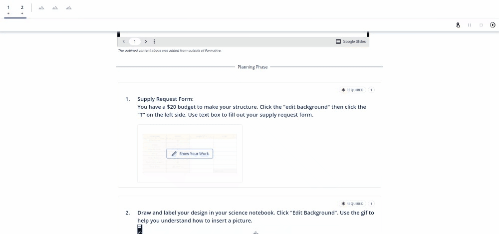 You have a $20 budget to make your structure. Click the "edit background" then click the "T" on the left side. Use text box to fill out your supply request form.
