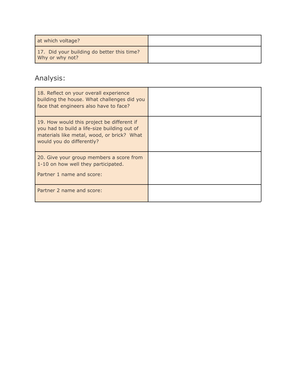 Reflect on your overall experience building the house. What challenges did you face that engineers also have to face?