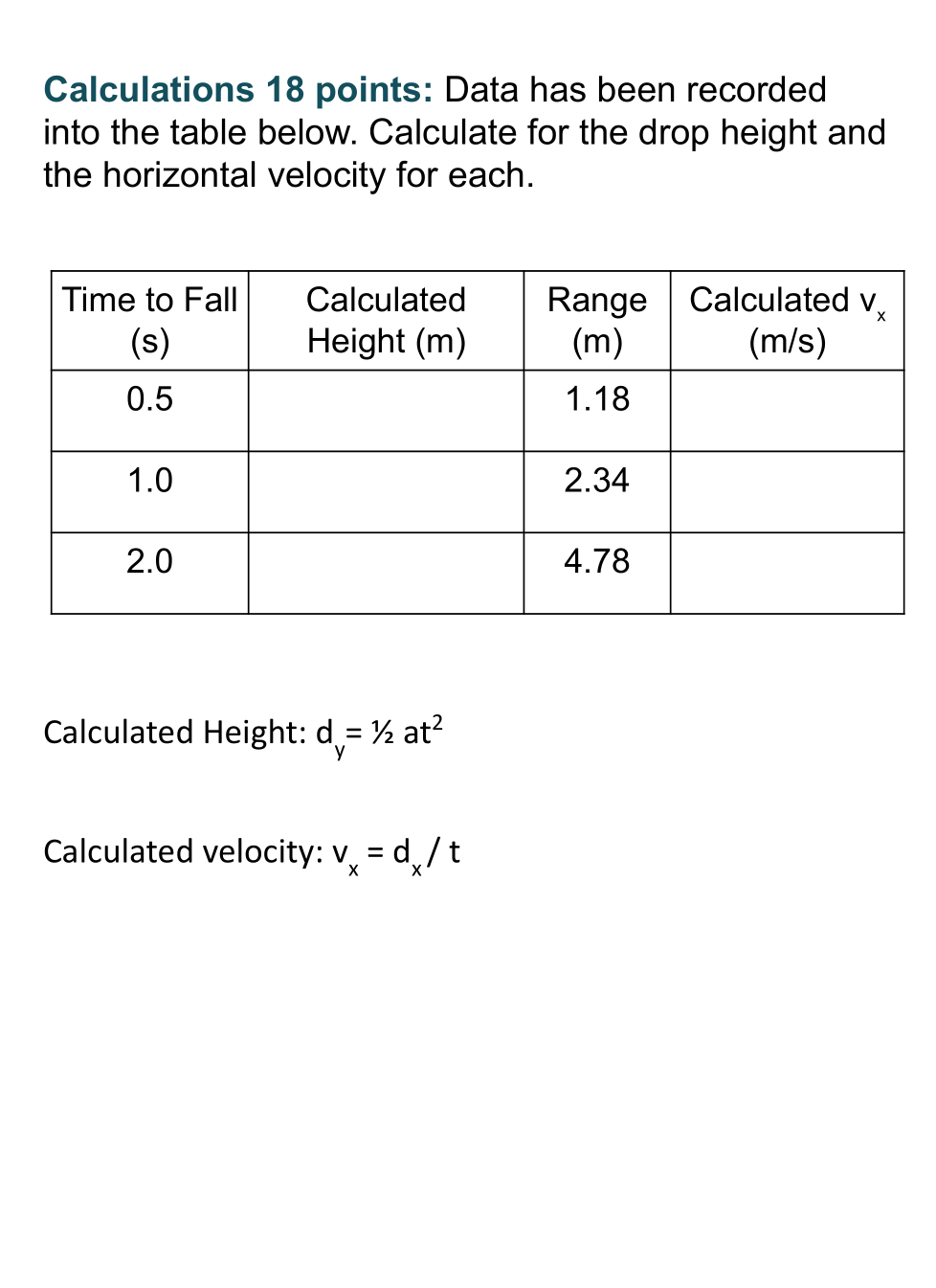 Add in a screen shot of your graph of Horizontal distance (range) vs. time