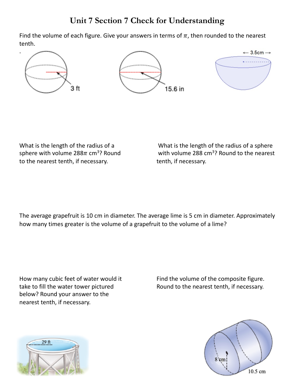 The average grapefruit is 10 cm in diameter. The average lime is 5 cm in diameter. The volume of a grapefruit is _____ times greater than the volume of a lime. Round to the nearest tenth, if necessary.