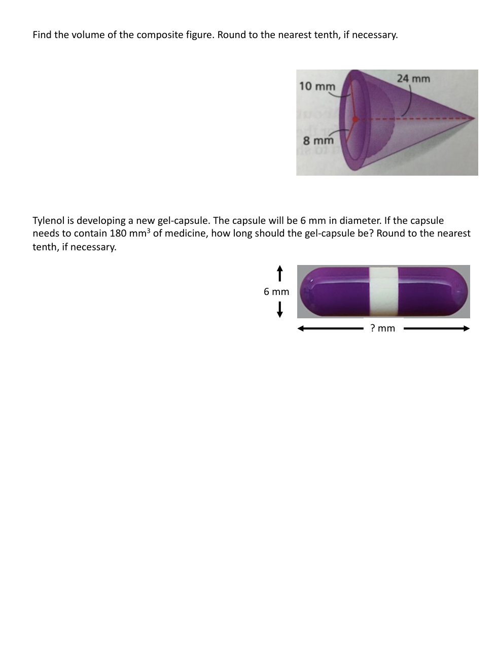 Tylenol is developing a new gel-capsule. The capsule will be 6 mm in diameter. If the capsule needs to contain 180 mm3 of medicine, the entire gel capsule needs to be _____ mm long. Round to the nearest tenth, if necessary.