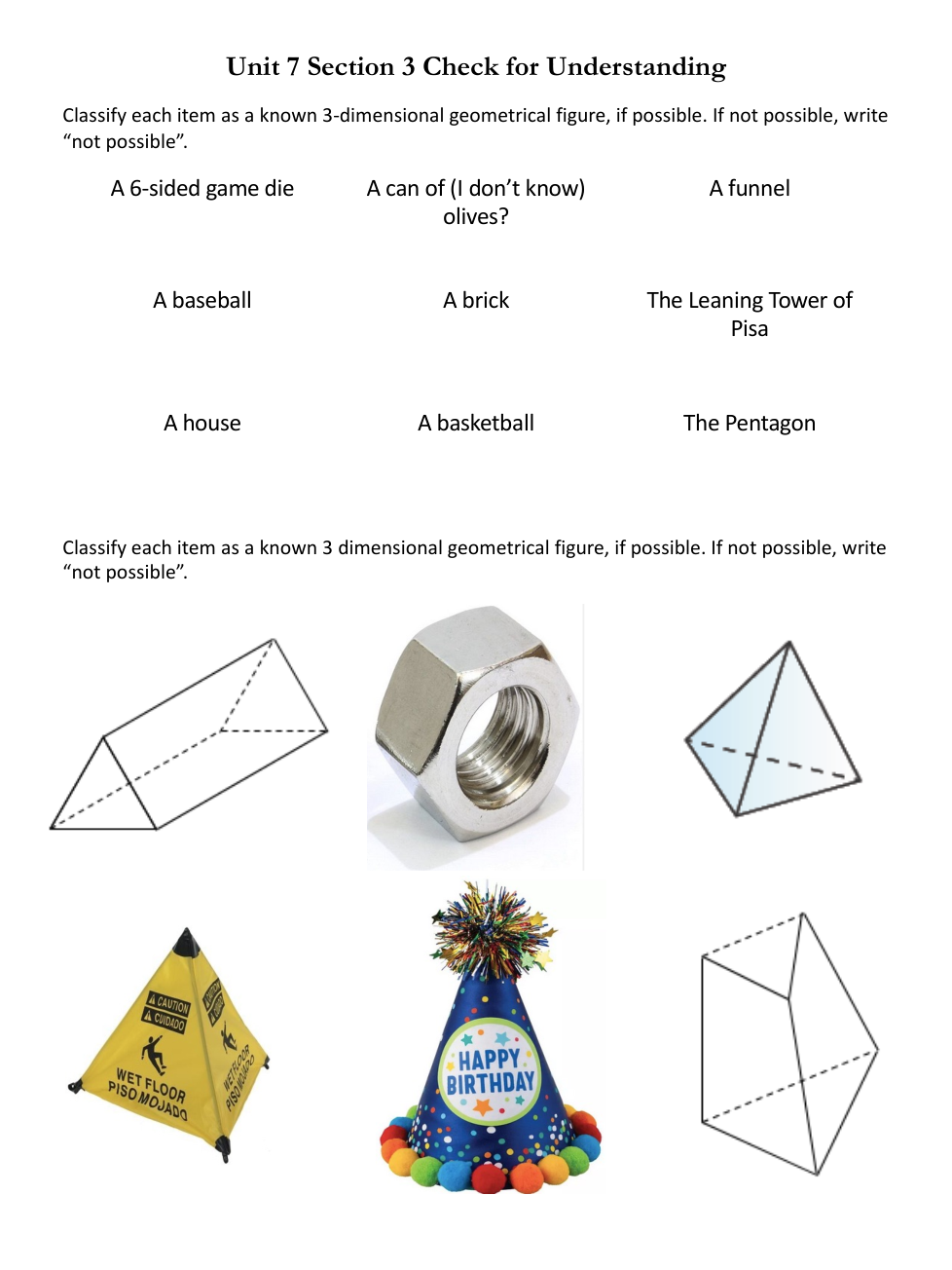 Classify as a known 3-dimensional geometrical figure, if possible. If not possible, write "not possible":