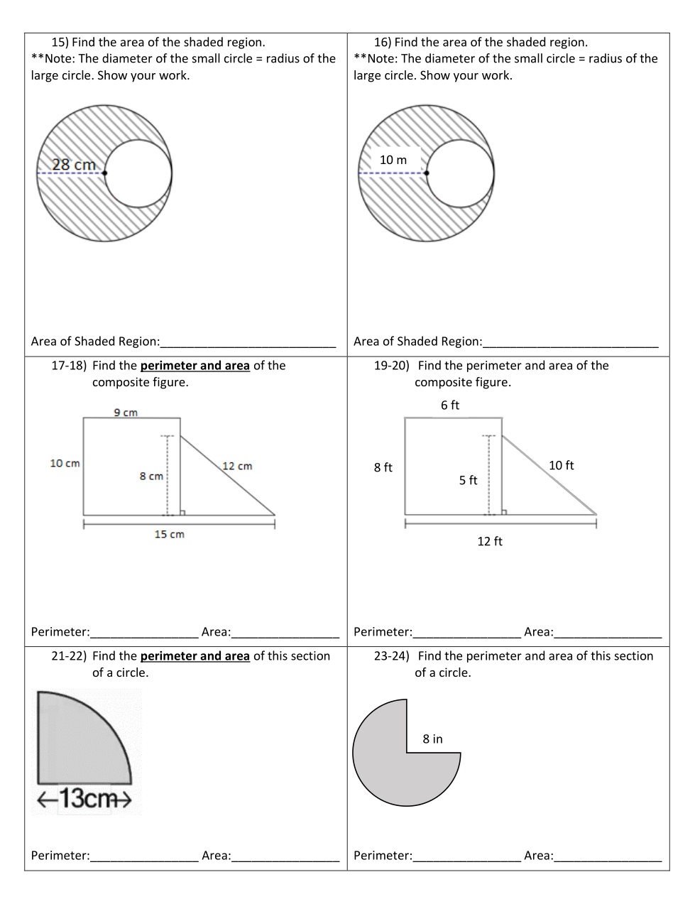 Find the perimeter of the section of the circle.Write answer like: 12.34 cm