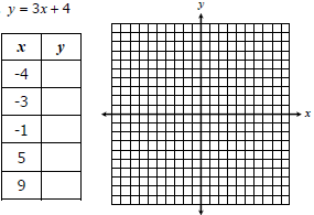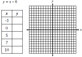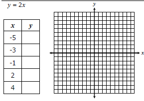In the show your work section, choose your own x values, determine the y values, and then graph.