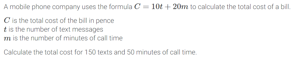 Calculate the total cost for 150 texts and 50 minutes of call time. Give your answer in pounds.