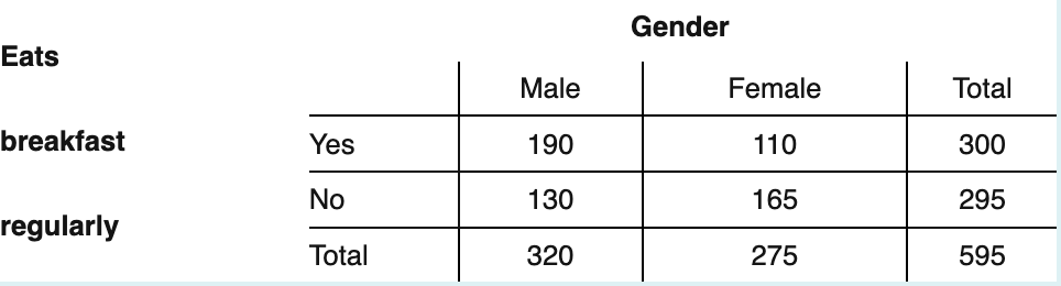 2. find P(Female OR Eats Breakfast Regularly) = _______