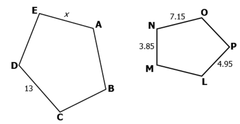 Figure ABCDE is similar to figure LMNOP. Find x.