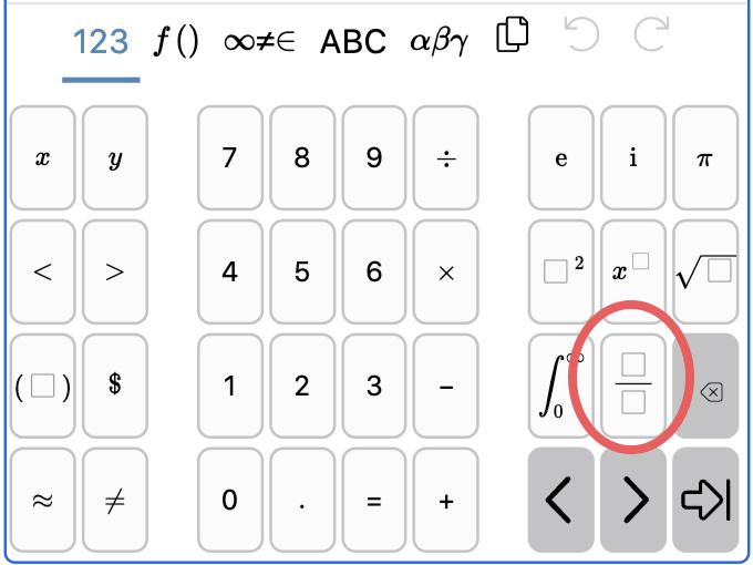 If entering a fraction, use the circled tool. If you are writing a mixed number. Select your whole number first, then click the fraction tool.
