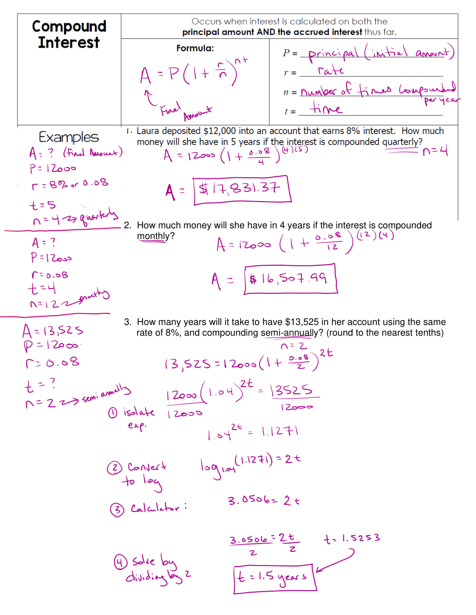 (for n, remember it's the number of times per year...2x per month and 12 months in a year)