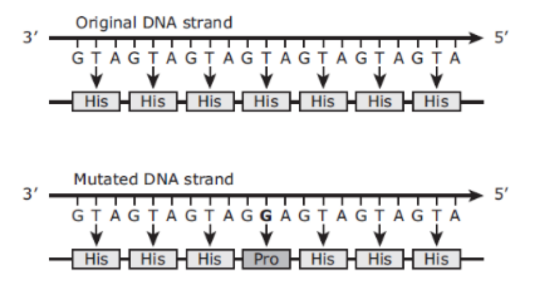 An illustration of how a particular DNA mutation will most likely affect the polypeptide produced is shown.