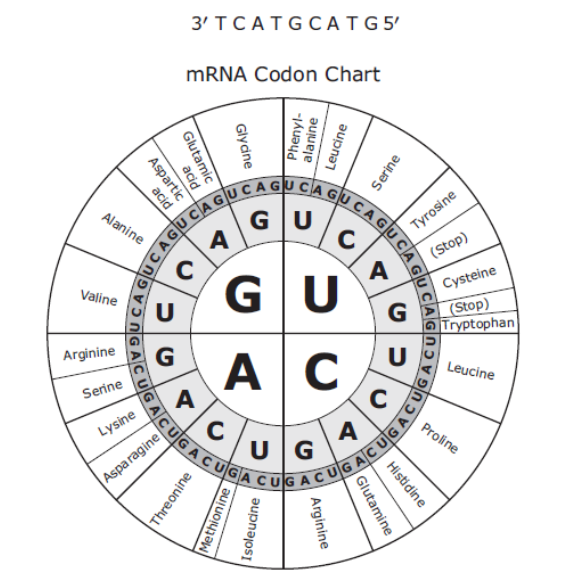 Which amino acid would be coded first from the DNA strand being transcribed?