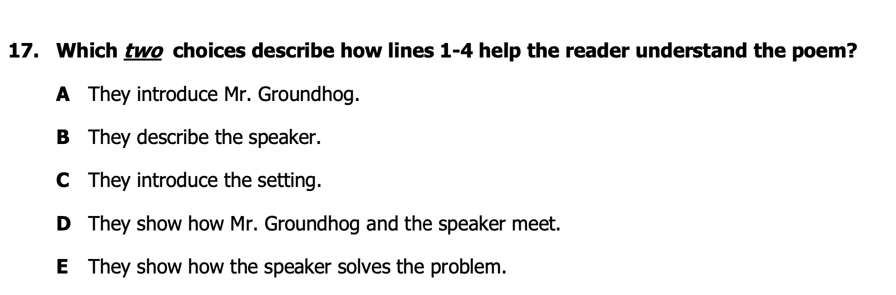Which two choices describes how line 1-4 helps the reader understand the poem?