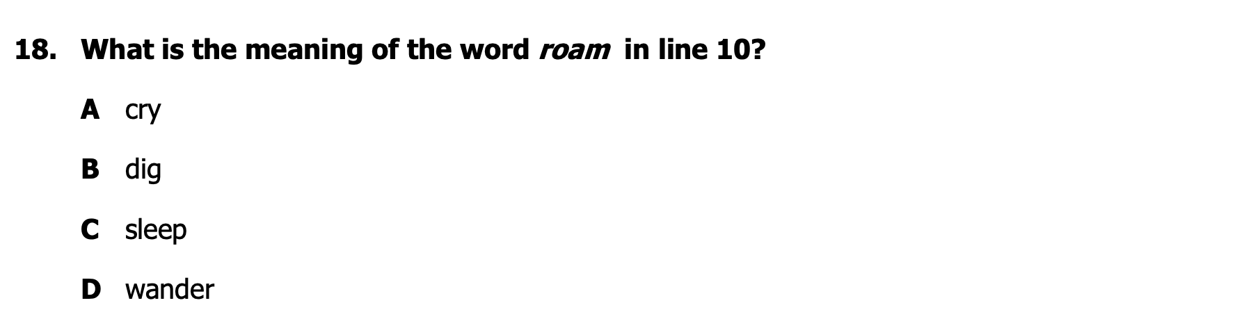 What is the meaning of the word roam in line 10?
