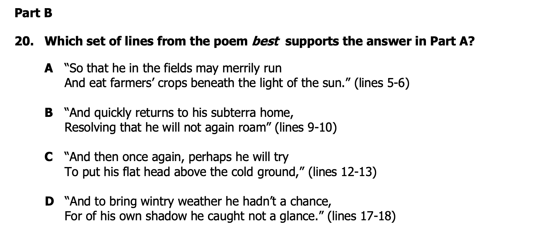 Which set of lines from the poem supports the answer in Part A?