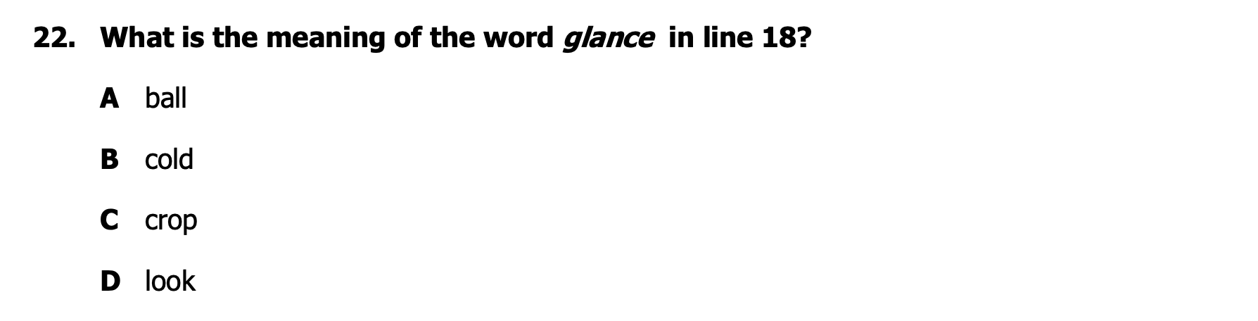What is the meaning of the word glance in line 18?