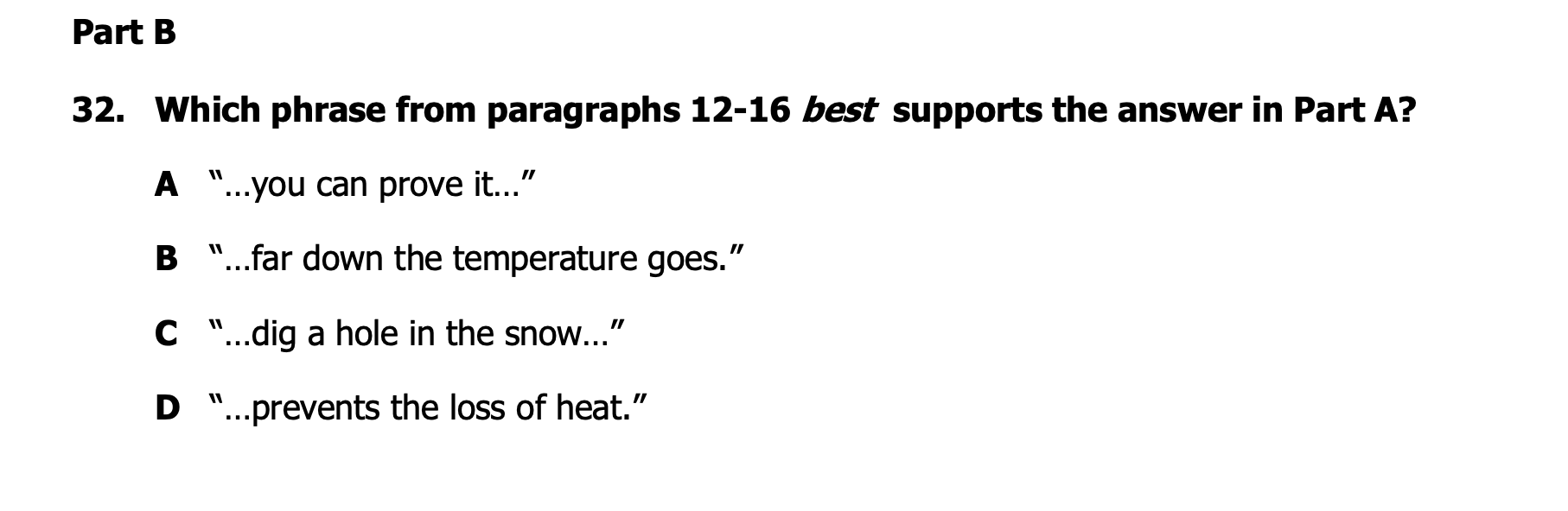 Which phrase from paragraphs 12-16 best supports the answer to Part A?