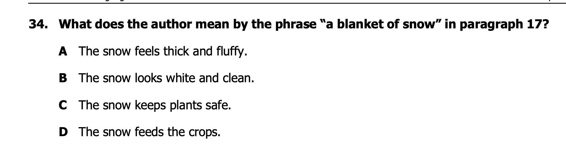 What does the author mean by the phrase "a blanket of snow" in paragraph 17?