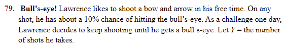 Shuffle a deck of cards. Turn over the top card. Put the card back in the deck, and shuffle again. Repeat this process until you get an ace. Count the number of cards you had to turn over.