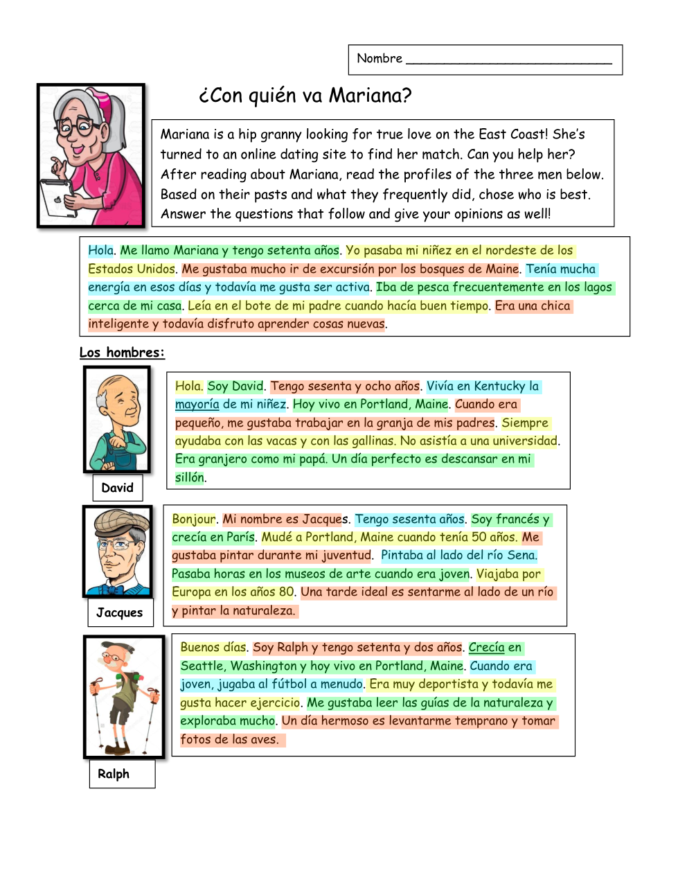 Escribe 3 verbos en el imperfecto del perfil de Mariana.