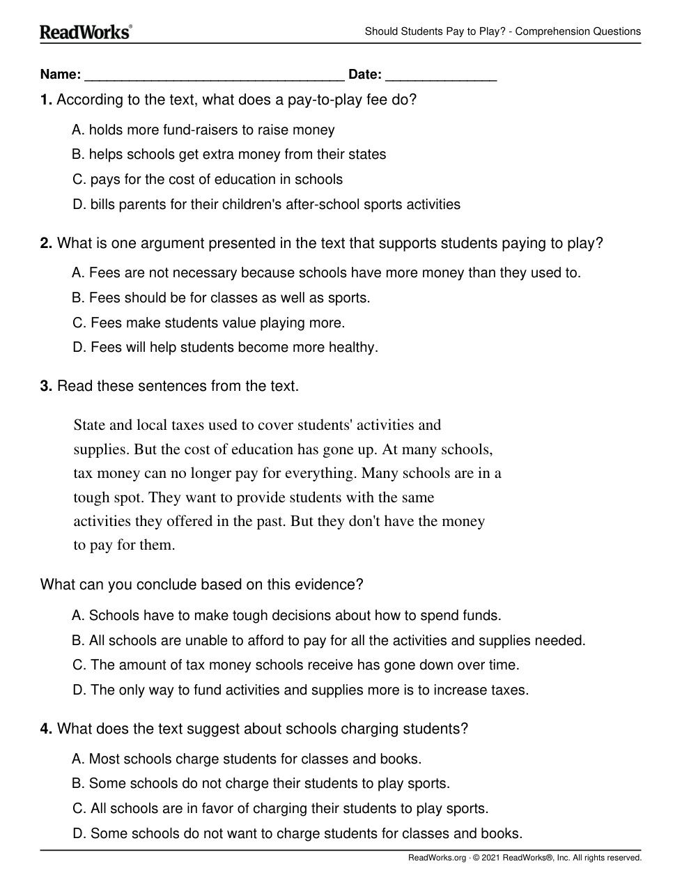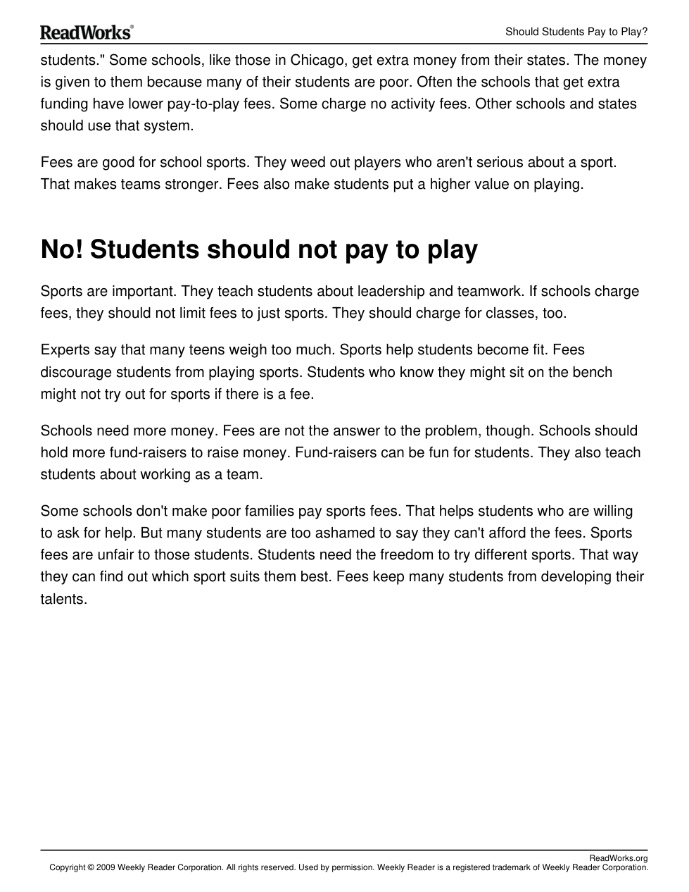 Should Students Pay to Play?