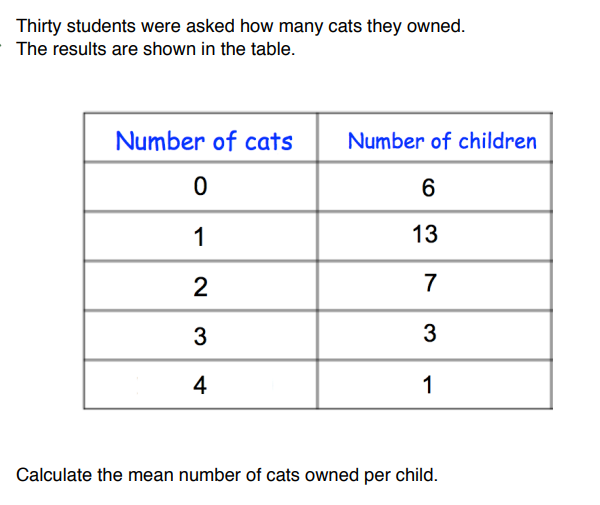 Calculate the mean number of cats owned per child. Give your answer to 1 decimal place