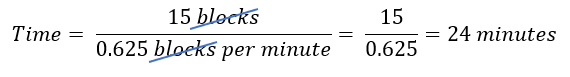 You and a friend decide to take the Pulaski bus 15 blocks to your aunt's house. If the bus averages a speed of 0.625 blocks per minute then how long will it take you to reach your aunts?