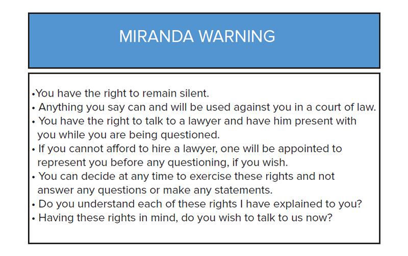 At the time of the interview, Alvarado was a 17-year-old high school student. The detective contacted Alvarado’s mother, who agreed to bring him to the police station for questioning. When Alvarado arrived with his parents, the detective denied the parents’ request to remain with their son during the interview. While they waited in the lobby, Alvarado was questioned alone. During the two-hour session, the detective twice asked Alvarado if he wanted to take a break. Alvarado admitted to his role in the killing. At the end of the interview he went home. Alvarado was never advised that he had a right to remain silent, to consult a lawyer prior to answering questions, or to leave the police station.