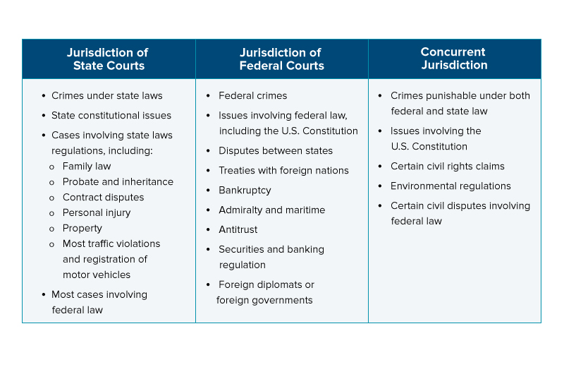 Move each case to the court with the proper jurisdiction (State or Federal). Use the chart above to assist.