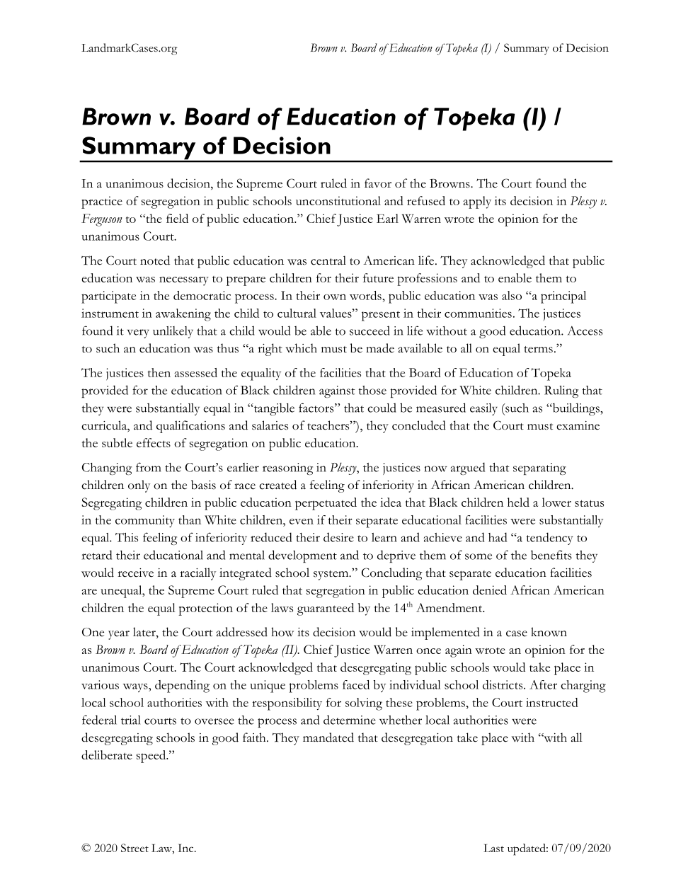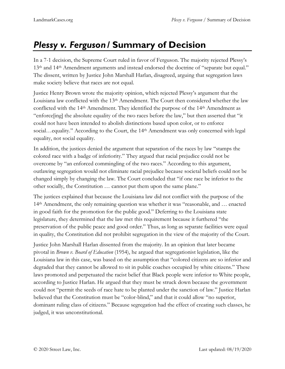 Supreme Court Decisions - You must answer at least one of Plessy or Brown and the Miranda question