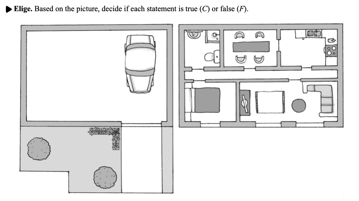 Gramática: ¿Cómo es el apartamento? Decide if each statement is true (C) or false (F) based on this image: