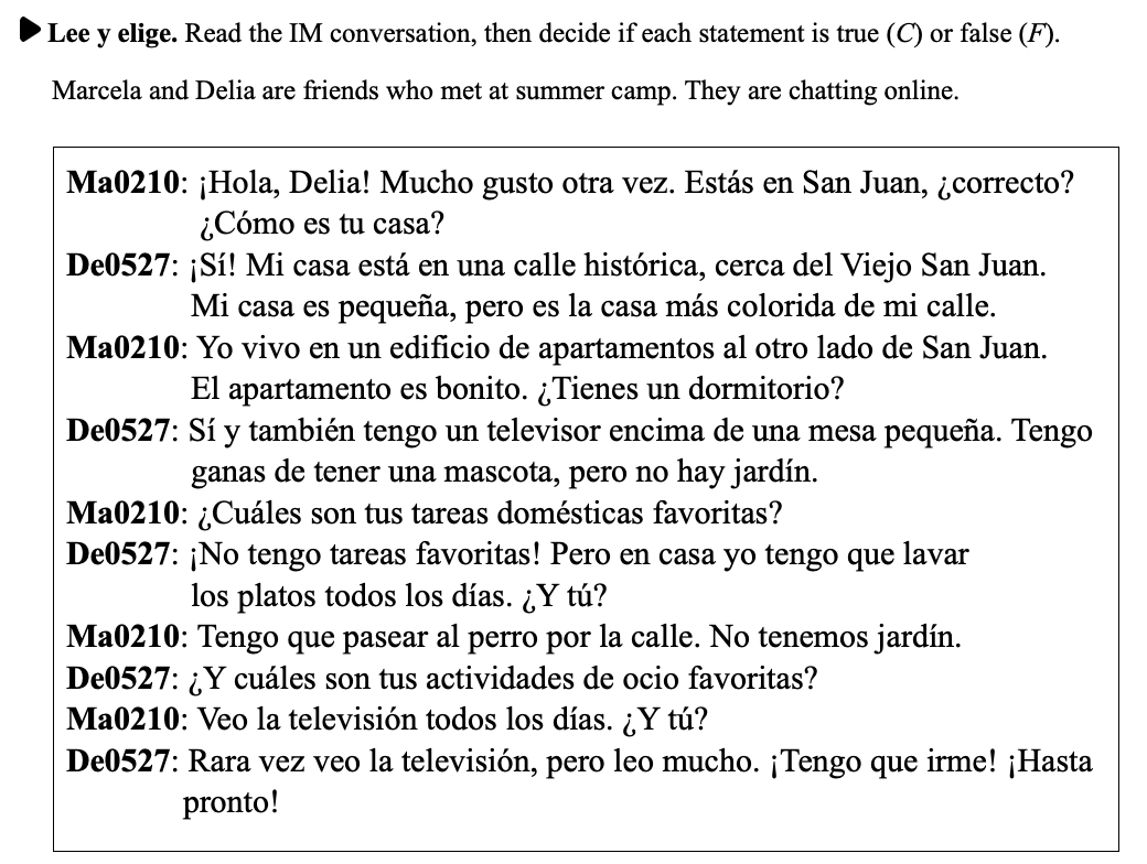 Leer: En San Juan Read the IM conversation, then decide if each statement is true (Cierto) or false (Falso).