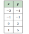 The points on the table lie on a line. What is the slope of the line?