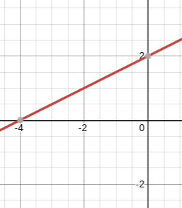 slope: 1/2, y intercept: (0,2)