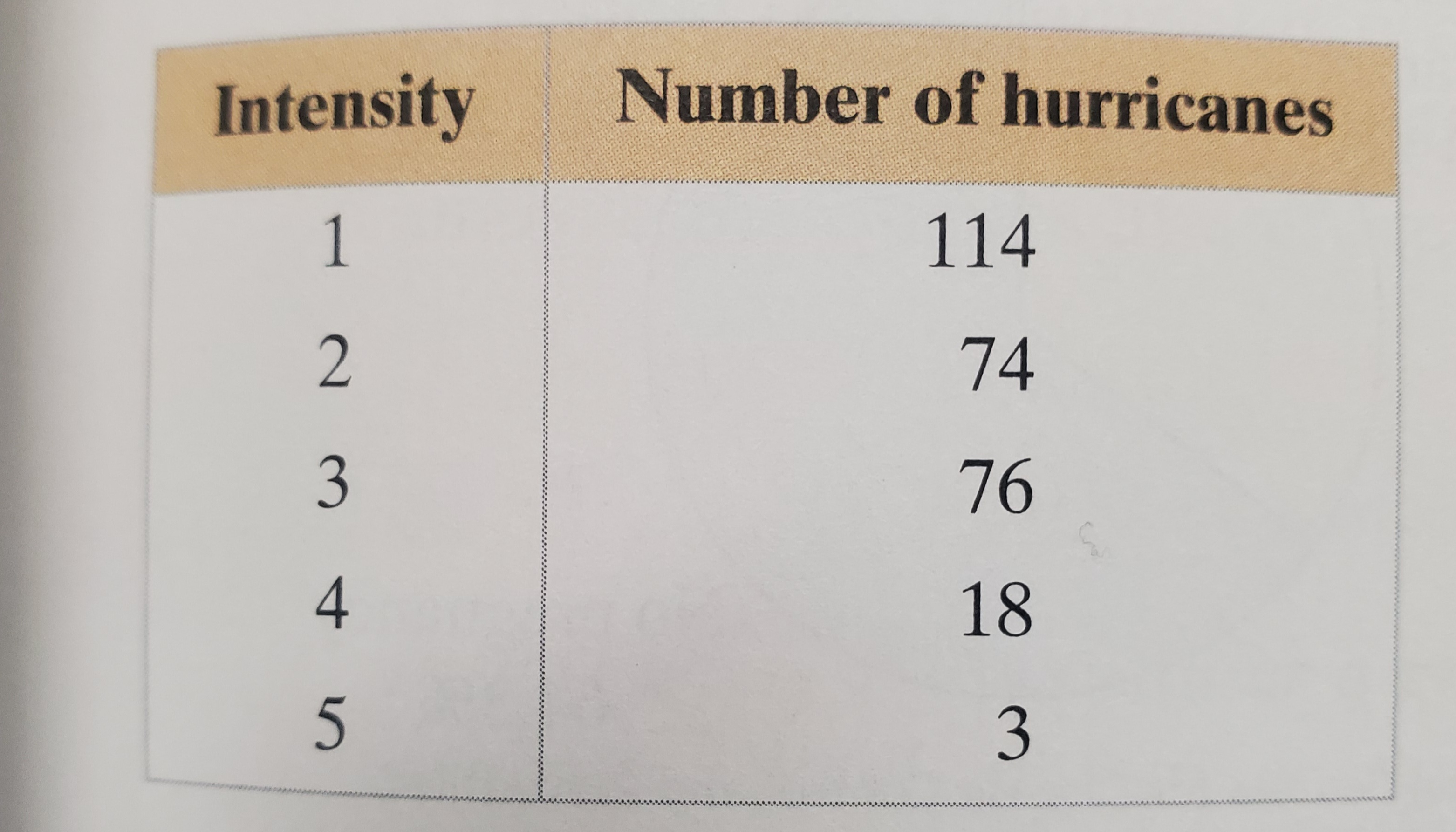 The table to the left lists the number of U.S. mainland hurricane strikes for various intensities according to the Saffir-Simpon hurricane scale.