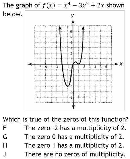 multiplicity=1--cross, multiplicity=2--bounce (tangent), multiplicity=3--inflection