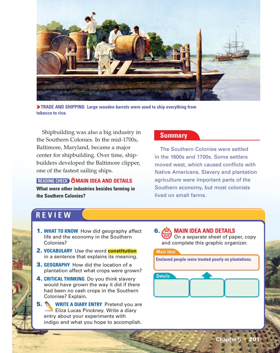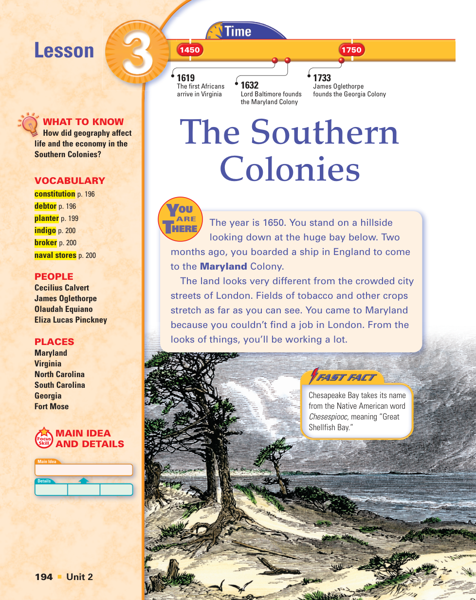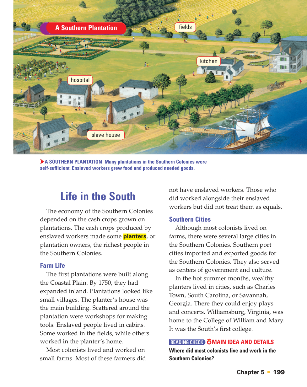 How did geography affect life and the economy in the Southern Colonies? Since the land was good for ____________ , _______________ played an important role in the economy of the Southern Colonies.