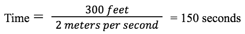 You and a friend go sledding at a hill outside of Chicago. If your average speed down the hill is 6.56 feet per second then how much time will it take you to reach the bottom of the 300-foot-long hill?