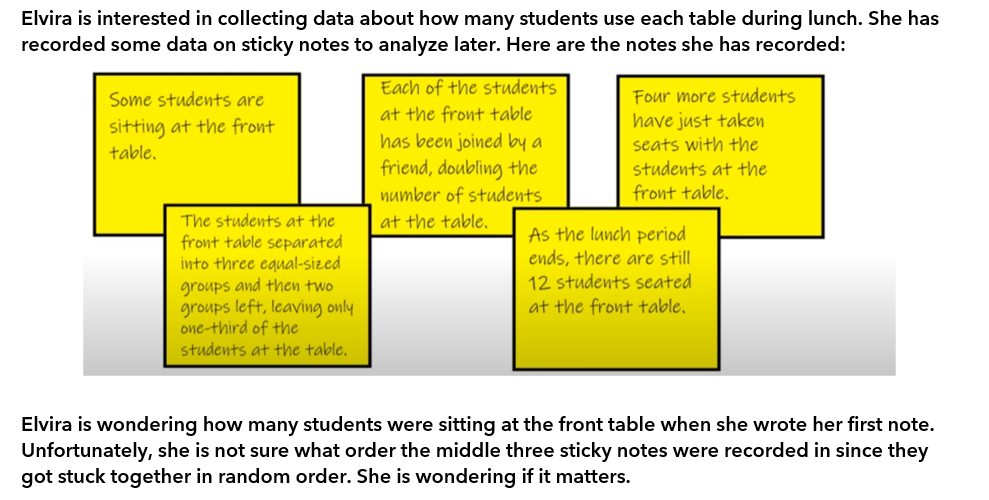 Determine how many students were originally sitting at the front table based on the sequence of notes that appears in each ordering.