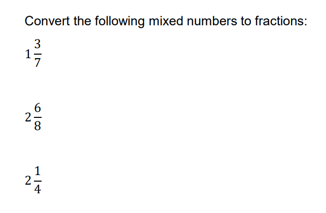 Convert 2 and 1/4 to a fraction