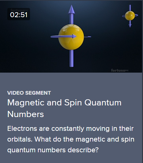 You can have up to 2 electrons in an orbital, but they can't be at the same place at the same time. To identify each individually, each electron is assigned a _______ .