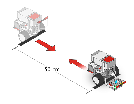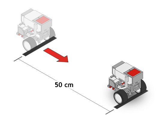 Place two pieces of tape 50 cm apart. Your robot should travel exactly from one tape to the other to complete the challenge!