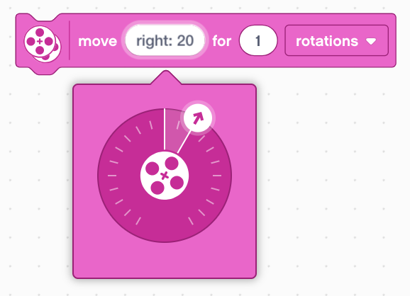 Click the βstraight: 0" area of the Block. A βdialβ will appear, allowing you to set the βsharpnessβ of the turn in the robot's movement β the balance between forward motion and turning motion.