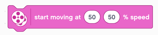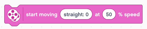 Instead of a βMove [straight]β Block, add a βMove for [rotations] at 50-50 % speedβ block to the program.