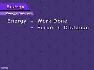 Energy = (F)(D) where the letter 'F' means _______ and the letter 'D' means _______