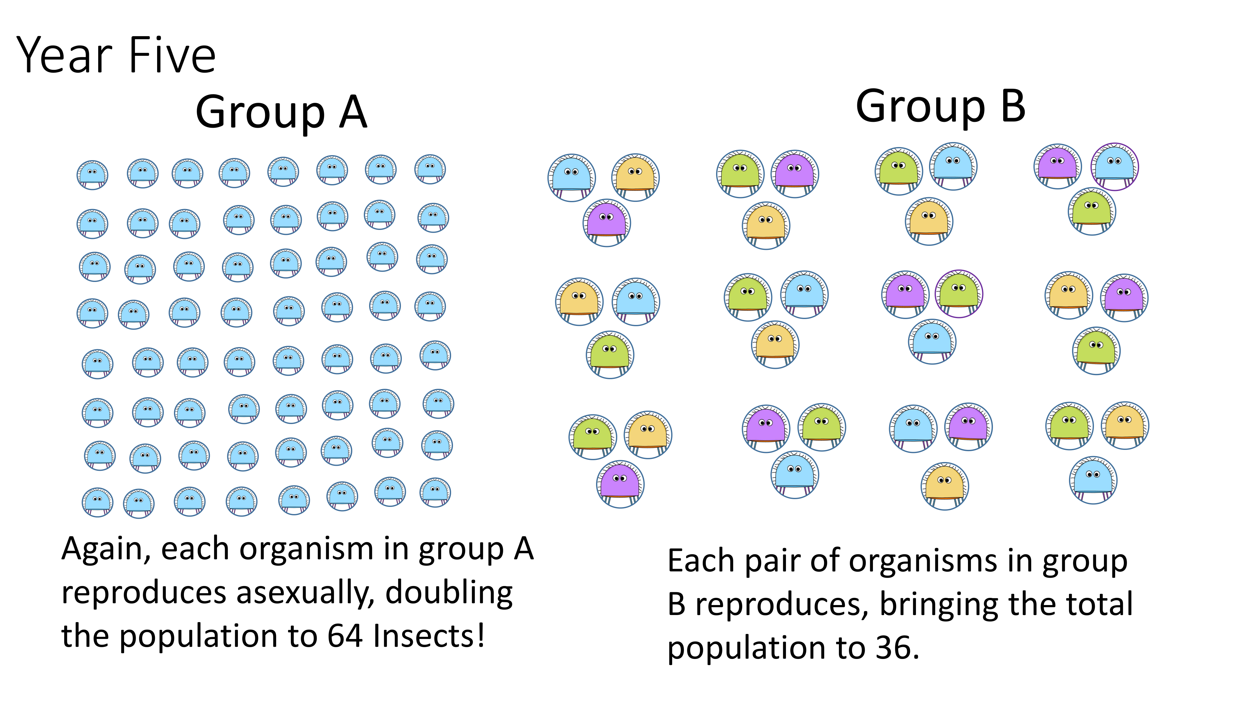 Group A started with 8 insects, in year 2 how many insects are there in group A?