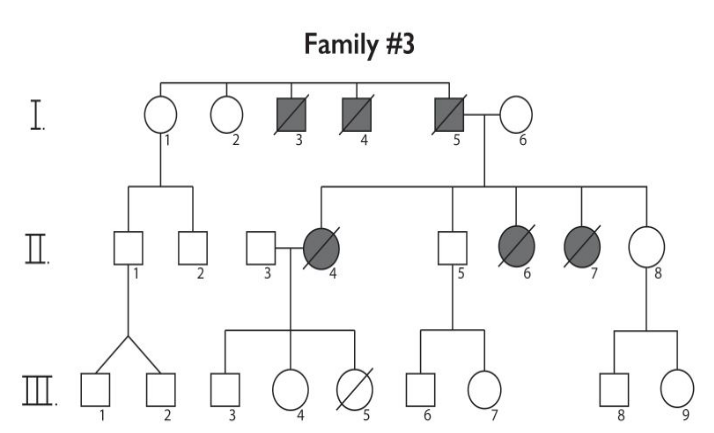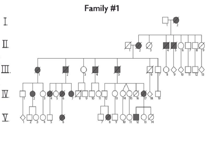 In Family 1, they had 8 offspring, and 3 of them had cancer. Explain how it happened that more than half of their offspring were cancer free.