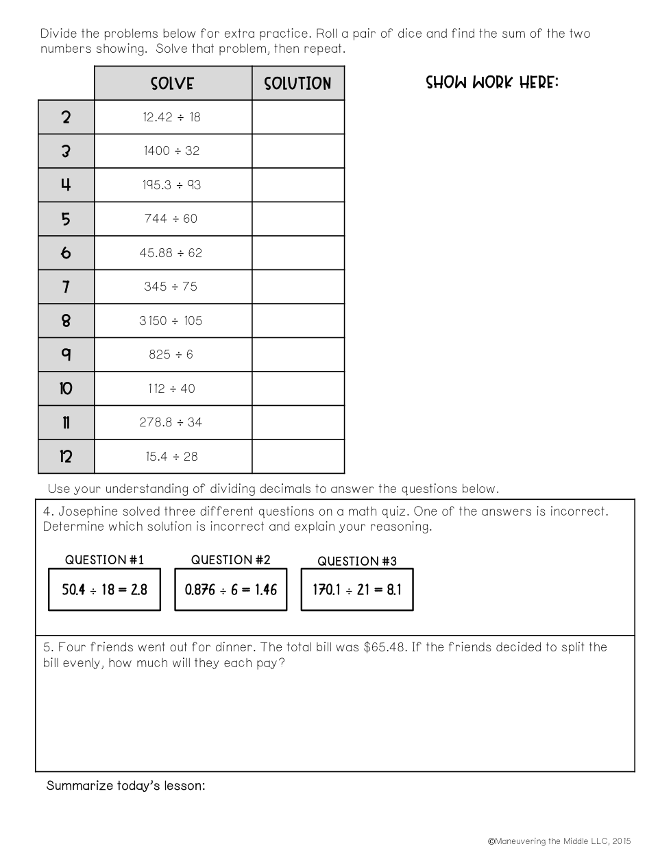 Upload a picture of your division work for all of the problems.