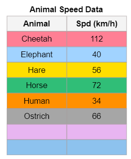 A bar graph is useful for comparing things, such as how fast animals can run. Select the data table "Animal Speed Data."