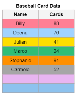 A bar graph is useful for comparing things, such as how how many baseball cards a group of students own.