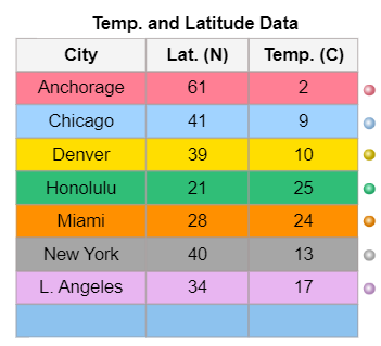 2. Click "New" until you see the data table for "Temp and Latitude Data."
